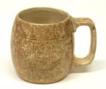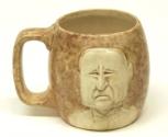 DescriptionA glazed ceramic beer mug with a brown spatter finish. On the side of the mug is a raised caricature portrait of James Farley. On the opposite side of the mug is the slogan: HAPPY DAYS / ARE HERE / AGAIN. Inscribed on the underside of the mug: STANGL / 1647-1.
