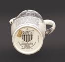 Printed on the underside of the pitcher is the manufacturing information: © / PATRIOTIC / PRODUCTS / ASSOCIATION ~ PHILADELPHIA ~ [within a shield] / TRADE MARK / DESIGNED & PRODUCED / A.E. GRAY & CO. LTD. / -HANLEY- / ENGLAND / THIS IS NO 533 [number handwritten in ink] OF A FIRST AND LIMITED EDITION / PATENT APPLIED FOR. Also on the underside is adhered a small sticker with “D-26-25” and “41-8-38."