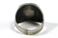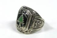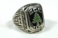 Label TextFranklin Roosevelt was deeply troubled by high unemployment rates among America’s youth during the Great Depression. Shortly after taking office in 1933, he personally devised the idea for the Civilian Conservation Corps (CCC), a program to put young men aged 17-24 —many from urban areas — to work on conservation projects in healthy rural environments. FDR established the CCC by executive order on April 5, 1933. Within three months of its creation, the Corps had enlisted nearly 250,000 young men. They were assigned to CCC camps around the nation.This sterling silver and enamel ring was designed for and sold to members of the Civilian Conservation Corps. The rings were advertised for sale in “Happy Days,” the CCC’s national newspaper. This ring was purchased by a member of CCC Company #1475 in Tennessee. Tennessee CCC Company 1475 was created less than 60 days after President Franklin D. Roosevelt signed the legislation creating the CCC, and it operated continuously until the CCC program was discontinued in 1942.