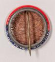 DescriptionA round pinback campaign button. At the center of the button, on a white circular background, is a blue halftone photographic portrait of Franklin Roosevelt. Encircling the image is a band of red (upper section) and blue (lower section) bearing white text that reads: “CARRY ON / MILLINERY WORKERS UNION”. The manufacturer's information and a union bug are printed on the rim of the button.