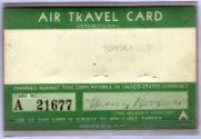 DescriptionAn Air Travel Card (International), card number A 21677. It is signed in ink at the bottom of the obverse side: Eleanor Roosevelt. Inserted into the reverse of the card is a metal charge plate: A 3898 W 21677 / ELEANOR ROOSEVELT / UNITED FEATURE / SYNDICATE INC. The card is permanently inserted into a protective plastic sleeve.