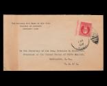 DescriptionA beige-colored stamp cover from Cuba addressed to (typed): To the Secretary of the Hon. Franklin D. Roosevelt, / President of the United States of North America, / Washington, D. C., / U. S. of A. The return address is printed in the upper left corner: THE NATIONAL CITY BANK OF NEW YORK / SUCURSAL DE CAMAGUEY / CAMAGUEY, CUBA. Adhered in the upper right of the envelope is a Cuban 1917-1918 rose 2c Maximo Gomez postage stamp (Scott 265). The envelope is postmarked Camaguey, Cuba, January 5, 1938.