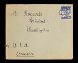 Label TextFranklin Roosevelt was an avid, lifelong stamp collector who gathered over 1.2 million stamps into his personal collection during the course of his life. He began collecting stamps at the age of eight at the suggestion of his mother, Sara Delano Roosevelt, who passed on her collection to him.On the reverse of the envelope, along with the handwritten return address, is a black ink stamped message that reads: FROM THE FRANKLIN D. ROOSEVELT COLLECTION / AUTHENTICATED BY H. R. HARMER INC., N. Y. The circled number "R55" is written in pencil in the lower right corner.