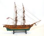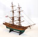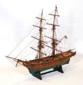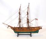DescriptionA model of the brig-of-war, HMS VIPER. The ship's hull is painted green below the water line, and is natural oak above. The two masts have no sails, and the American flag flies off of the rear mast. A rowboat is suspended from the stern. The model sits on a wooden cradle stand.