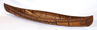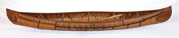 Label TextThis model was presented to Franklin Roosevelt by the maker, Edwin Tappan Adney of Upper Woodstock, New Brunswick, Canada. Text at the bottom of the canoe indicates that it was based on a canoe built by Tomah Joseph (1837-1914), a Passamoquoddy Indian who summered at Campobello Island and taught a young FDR how to paddle a canoe.The canoe comes with a separate wooden paddle with an illegible note written in pencil on the end.