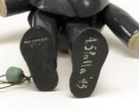DescriptionA painted wood jumping jack toy in the image of Winston Churchill. When pulled, a string and wooden ball hanging below the toy cause the arms and legs to move. Churchill is shown wearing a dark blue-gray suit, white shirt, black tie, and black shoes. A cigar is inserted in Churchill's mouth. The maker's name is painted on the underside of the left foot: A. Spalla '43.