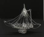 DescriptionA small, delicate single-masted sculpture of a ship. The ship is made entirely of clear glass.