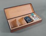 Descriptiona) A vegetable-tanned leather box with stitched construction. The box is hinged along the backside of the lid. The top of the lid is stamped with a gilded monogram: F.D.R. Impressed on the underside of the box: MADE IN AUSTRIA. The interior of the box has a wood (possibly cedar) insert with four divided sections. There is also a wood panel insert for the interior of the lid.