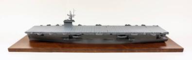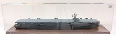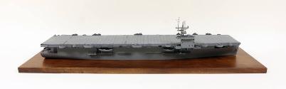 DescriptionA scale model of the aircraft carrier, USS CASABLANCA (CVE-55). The wooden ship has a gray painted wood hull. The model is mounted to wood base with an attached protective acrylic bonnet.