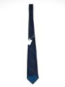 DescriptionA navy blue necktie on which is a woven pattern consisting of evenly spaced diagonal lines formed from the name "ROOSEVELT" repeated in medium blue.