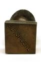 DescriptionA small bronze-colored, plated metal head of a man, possibly meant to represent Abraham Lincoln. The figurine has simplified features and sits on an integrated, matching square base. The hair, beard, eyes, and mouth of the figurine are etched into the surface, while the ears and nose are in relief. The maker's name is inscribed on the underside of the base: J.P.SPOERL.