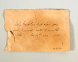 The shoes come with the envelope in which they were originally stored. On the envelope is a handwritten note by Franklin D. Roosevelt's mother, Sara, that reads: Baby Franklin's first shoes worn / from 5 months until 9 months / old - Oct. 30th 1882. S.D.R.