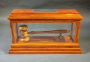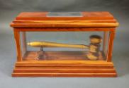 DescriptionA gavel made from natural wood. The gavel is encased in a natural wood and glass display case. Mounted to the top of the case is a silver-colored metal plaque with an inscribed message that reads: "FASHIONED FROM A TREE STANDING / MAJESTICALLY OVER HIS GRAVE / THIS GAVEL COMMEMORATING THE / PATRIOTISM OF PHILLIP FRENEAU / POET OF THE REVOLUTION / AND CHAMPION OF THE BILL OF RIGHTS / IS PRESENTED TO / THE PRESIDENT OF THE UNITED STATES / FRANKLIN DELANO ROOSEVELT / BY MONMOUTH COUNTY COUNCIL / VETERANS OF FOREIGN WARS OF THE UNITED STATES / FRENEAU NEW JERSEY / DECEMBER 12, 1943."