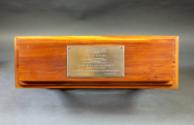 Label TextThis gavel, commemorating Philip Morin Freneau (1752 – 1832), was made by William Joste using wood taken from a mulberry tree standing by Freneau’s grave. The case holding the gavel, created using cedar from Fort Hancock at Sandy Hook, was made by Milton Wright. The silver plate on top of the case was engraved by Raymond Brazo, Thomas Haffer, and John Laetavd. The makers and engravers were all from Asbury Park, New Jersey.Additional Details