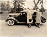DescriptionA specially equipped 1936 blue 4-door Ford Phaeton convertible sedan with license plate: 1945 N Y / 3.