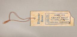 DescriptionA general admission ticket for a November 29, 1935 Welcome Home event for Franklin D. Roosevelt at Grant Field in Atlanta, Georgia. A string is tied through a hole at the top of the ticket.