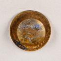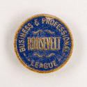 DescriptionA round lapel stud from Franklin Roosevelt's 1932 campaign. On the medium blue background is brass-colored text that reads: "ROOSEVELT / BUSINESS & PROFESSIONAL LEAGUE." The manufacturer's information is stamped into the back of the stud.