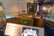 The desk is on display in the FDR’S OVAL OFFICE DESK exhibit in the Museum’s APRIL 12, 1945 gallery.