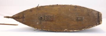 Label TextThis ship model hull was made by Franklin Roosevelt for his children.A set of masts and sails is stored separately.