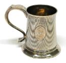 DescriptionA silver plated stein with handle. On one side of the stein is a monogram within an oval: FDR. Inscribed in an oval on the other side is a date: January / 30th / 1944. There are a number of hallmark stamps on the underside of the stein.