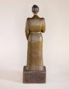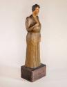 Label TextNoted African American artist, Leslie Garland Bolling (1898-1955), presented this carved pine figure of Eleanor Roosevelt (and a companion statuette of Franklin Roosevelt) to Eleanor Roosevelt on September 4, 1940. From 1938-1941, Bolling helped operate an arts education center in Richmond, Virginia supported by the Works Progress Administration (WPA). Bolling garnered critical attention with his carved wood sculptures of working people and nude figures. He used a scroll saw to rough out a figure’s shape and pocket knives to carve the details, leaving the finished pieces unsanded to expose his tool marks. The statuette is currently on display in the FDR Library's special exhibition, BLACK AMERICANS, CIVIL RIGHTS, AND THE ROOSEVELTS, 1932-1962.Additional Details