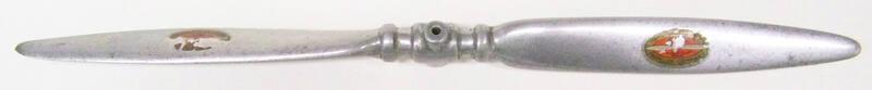 Label TextFDR kept this model of an airplane propeller on his Oval Office desk and may have used it as a letter opener. It is on display in the FDR’S OVAL OFFICE DESK exhibit in the Museum’s APRIL 12, 1945 gallery.Additional Details