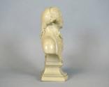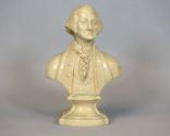 DescriptionA small, glazed, cream-colored earthenware head and shoulders bust of George Washington. He is shown wearing a coat, waistcoat, and cravat. The bust sits on an integrated base. On the reverse of the bust, within a circle, is inscribed the following information: WASHINGTON / Born - - - 1732 / Died - - - 1799 / ENOCH WOOD, SCULP. / 1818. Below the inscribed circle is a relief image of a bald eagle holding a banner with stars in its beak. The number 366 is stamped into the reverse edge of the base.