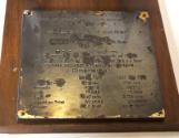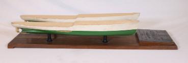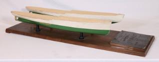 DescriptionA commemorative piece featuring two green and white unfinished hulls mounted on a single wooden base with metal plaque. The inscription notes that they are from Maierform of America, Inc., New York. The rest reads: HONOURABLE FRANKLIN D. ROOSEVELT / PRESIDENT / of the / UNITED STATES OF AMERICA / with compliments of / MAIERFORM OF AMERICA, INC. / New York / T.S.S. 'Ile de Beauté' (Passenger ship deLuxe plying between Marseilles and Corsica) / Built by Deutsche Schiffund Maschinenbau Akt. Ges. Werk A.G. Weser / Owners: Companie Fraissinet, Marseilles. Following the inscription are dimension, speed, and power comparisons between normal ships and a Maierform - the only difference being in power, to the advantage of the Maierform.