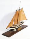 DescriptionA ship model of a two-masted schooner. The ship has a black and white hull and light brown sails. It is mounted to a wood base to which is affixed a brass plate inscribed: PRESENTED TO / HON. FRANKLIN D. ROOSEVELT / PRESIDENT OF THE UNITED STATES / BY / MEMBERS OF THE / BOY'S CLUBS OF AMERICA / MAY 20, 1941.