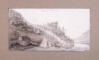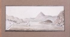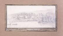 Descriptiona) A two-piece slipcase covered with brown leather and buckram. Embossed gilt lettering on one side edge reads: HUDSON / RIVER SKETCHES / LODET / 1806-7. The slipcase contains an album of sketches (see b).