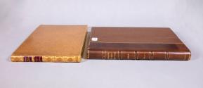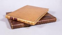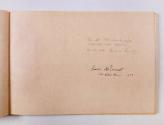 b) A bound album covered in tan leather with decorative gilt trim on the covers and page edges. Adhered to the album pages are nineteen original pencil and ink wash drawings of Hudson River scenes, et al. The spine of the album is accented with red leather and embossed gilt designs. Embossed gilt lettering on the spine reads: HUDSON / RIVER SKETCHES / LODET / 1806-7. Inside the album, the formal title is handwritten in ink: HUDSON RIVER ALBUM. / Series of Original Sketches, / from / New York to Hudson City. / P. LODET. / 1806 - 1807. A handwritten ink inscription on the fly leaf reads: To the President, with / affectionate regard,/ Nov. 10, 1933, Mark Eisner. Just below the inscription, is FDR's original ink signature: Franklin D. Roosevelt / The White House - 1933. The bookbinder's name is printed opposite the fly leaf: BOUND BY ZAEHNSDORF, LONDON, ENGLAND.
