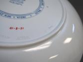 On the reverse of the plate is information on the coronation and the maker of the plate: [image of a crown] / TO COMMEMORATE / THE CORONATION / OF THEIR MAJESTIES / KING GEORGE VI / QUEEN ELIZABETH / – 1937 – / WEDGWOOD / MADE IN ENGLAND / KEITH MURRAY [facsimile signature]. Encircling this text are the names of various countries with ties to the British Empire: ENGLAND • SCOTLAND • IRELAND • WALES • INDIA • NEW ZEALAND • AUSTRALIA • SOUTH AFRICA • CANADA. Along the bottom are several manufacturing marks stamped into the surface: WEDGWOOD / MADE IN ENGLAND / G 3737.