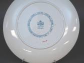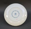 Label TextThis Wedgwood plate commemorates the May 12, 1937 coronation of the United Kingdom's King George VI and his wife, Queen Elizabeth.On the reverse of the plate is information on the coronation and the maker of the plate: [image of a crown] / TO COMMEMORATE / THE CORONATION / OF THEIR MAJESTIES / KING GEORGE VI / QUEEN ELIZABETH / – 1937 – / WEDGWOOD / MADE IN ENGLAND / KEITH MURRAY [facsimile signature]. Encircling this text are the names of various countries with ties to the British Empire: ENGLAND • SCOTLAND • IRELAND • WALES • INDIA • NEW ZEALAND • AUSTRALIA • SOUTH AFRICA • CANADA. Along the bottom are several manufacturing marks stamped into the surface: WEDGWOOD / MADE IN ENGLAND / G 3737.