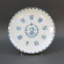 DescriptionA blue and white plate commemorating the 1937 coronation of King George VI and Queen Elizabeth of the United Kingdom. At the center of the white plate, in blue, are the profile portraits of King George VI and Queen Elizabeth flanked by the letters "G" and "R" and with the words "DIEU • ET • MON • DROIT" below. The portraits are within a laurel wreath topped by a crown. Encircling the wreath are nine shields and coat of arms relating to the British monarchy.