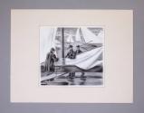 Label TextThis drawing is one in a series of original ink wash drawings created by Olin Dows for his book, "Franklin Roosevelt at Hyde Park," published in 1949 by American Artists Group, Inc. Olin Dows spent two years writing the text and drawing the book's 174 illustrations. This illustration appears on page 137 of the book.The drawing is mounted to a piece of cardboard and comes with a window mat.
