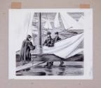 DescriptionAn original pen and ink and ink wash drawing with gouache highlights showing three men - Jacob E. Buckhout, John Aspinwall Roosevelt (Franklin D. Roosevelt's uncle), and Archibald Rogers - standing by the ice yacht, ICICLE, on the frozen Hudson River. Additional ice yachts are seen in the background. The drawing is signed by the artist in ink in the lower right of the image: Olin Dows © 1949.