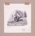 Label TextThis drawing is one in a series of original ink wash drawings created by Olin Dows for his book, "Franklin Roosevelt at Hyde Park," published in 1949 by American Artists Group, Inc. Olin Dows spent two years writing the text and drawing the book's 174 illustrations. This illustration appears on page 15 of the book where it is captioned: WHEN FRANKLIN'S GODFATHER, CAPTAIN ELLIOTT ROOSEVELT, BROUGHT HIS LITTLE DAUGHTER ELEANOR, WHO BECAME FRANKLIN'S WIFE, TO VISIT THE JAMES ROOSEVELTS AT "SPRINGWOOD," FRANKLIN TOOK HIS TURN AT BEING THE HORSE AND CARRIED HER PIGGY BACK AROUND THE PLAYROOM.The drawing is mounted to a piece of cardboard and comes with a window mat on which the title is written in pencil: Piggy Back.