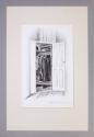 The drawing is mounted to a piece of cardboard and comes with a window mat on which the title is written in pencil: F.D.R.'s Clothes Closet.