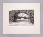 The drawing is mounted to a piece of cardboard and comes with a window mat on which the title is written in pencil: Franklin Roosevelt's Grave in the Rose Garden.