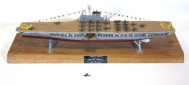 Label TextThis model of the USS FRANKLIN D. ROOSEVELT (CVB/CVA/CV-42) was presented to James Roosevelt, FDR's oldest son, by Revell, Inc. on September 10, 1954. At James’s request, the Revell company forwarded the model to the Roosevelt Library.Additional Details