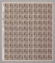 DescriptionA full pane of 100 unused U.S. 1938 sepia 7¢ Presidential Issue stamps (Scott 812) showing a profile portrait of Andrew Jackson. The pane is from stamp sheet no. 22033. The left margin of the pane has the original ink signatures of "Henry Morgenthau Jr." and "Franklin D. Roosevelt."