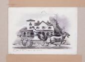 Label TextThis drawing is one in a series of original ink wash drawings created by Olin Dows for his book, "Franklin Roosevelt at Hyde Park," published in 1949 by American Artists Group, Inc. Olin Dows spent two years writing the text and drawing the book's 174 illustrations. This illustration appears on page 19 of the book.The drawing is mounted to a piece of cardboard and comes with a window mat on which the title is written in pencil: The Goat Cart.