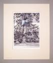 The drawing is mounted to a piece of cardboard and comes with a window mat on which the title is written in pencil: The Crow's Nest.