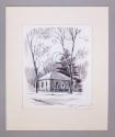 DescriptionAn original pen and ink and ink wash drawing with gouache highlights showing the James Roosevelt Memorial Library in Hyde Park, New York. It shows a small, squarish one-story stone building with a hip roof. A low fence and several trees encircle the building. The drawing is signed by the artist in ink in the lower right below the image: Olin Dows © 1949.