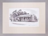 DescriptionAn original pen and ink and ink wash drawing with gouache highlights showing the Franklin D. Roosevelt Library gatehouse. Located at the start of the old entrance drive to the Library, the gatehouse is a one-story Dutch Colonial stone building built in 1941. The drawing is signed by the artist in ink in the lower right below the image: Olin Dows © 1949.