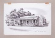 On the reverse of the drawing is a handwritten note in ink describing the image: Gate lodge at the FDR Library.