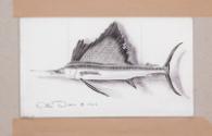 DescriptionAn original pen and ink and ink wash drawing with gouache highlights showing the image of a full-sized carved and painted wooden sailfish to which has been attached the fins and spear from a real swordfish caught by FDR on October 11, 1935 in the Pacific (Ocean) in the vicinity of Cocos Island, Costa Rica. The sailfish is in the FDR Library's Museum collection. The drawing is signed by the artist in ink in the lower left below the image: Olin Dows © 1949.