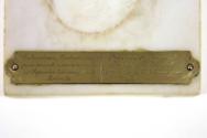 DescriptionA large mastodon tooth with five cusps. The tooth sits on a rectangular white marble base to which is fixed a small brass plaque with an inscription that reads: Colombian Mastodon tooth / from private excavation by / Alejandro Olvares Malo, / Bogota. / Presented to President / Franklin D. Roosevelt / upon his visit to Cartagena / July 1934.