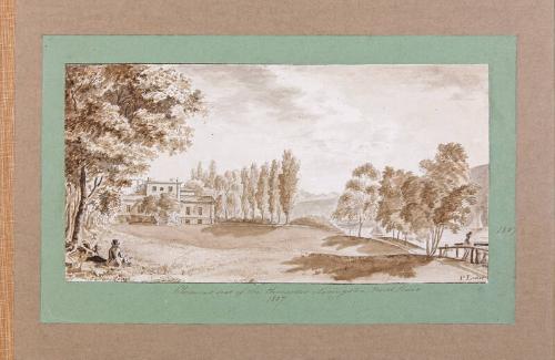 Page 14: “on North River, america / Governor Lewis' seat, Redhook at / Rinebeck, 96 m. from N.Y.” [title at the top of the drawing]. Image courtesy of the Franklin D. Roosevelt Presidential Library and Museum.