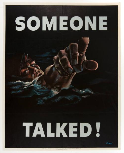 Frederick (Fritz) Siebel was born in Austria and studied illustration and design at the School of Applied Arts in Vienna. He immigrated to America in 1936 and served in the Army during the war. In 1942, Siebel entered this poster in a competition to create an image illustrating the need to protect sensitive information. It was later printed and distributed by the OWI. After the war Siebel worked as an illustrator for magazines and advertising agencies and founded a graphic and package design company. In 1959 he began illustrating children’s books, including the first books in the Amelia Bedelia series.